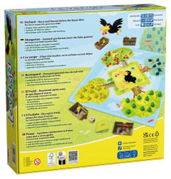Le Verger est un véritable best-seller des jeux petite enfance, déjà adopté par de nombreuses familles pour initier les plus jeunes au plaisir du jeu de société. C'est un jeu collaboratif : vous jouez tous ensemble contre Théo le corbeau. À votre tour, vous lancez le dé de couleur. S’il indique une couleur, vous cueillez un fruit correspondant et le placez dans votre panier. S’il montre le panier, vous choisissez deux fruits de votre choix. Mais si le dé révèle Théo, une pièce de son puzzle est posée au centre du plateau. Lorsque les 9 pièces sont assemblées, le corbeau a gagné. Vous devrez donc récolter les 40 fruits avant qu'il n'y parvienne. Accessible dès 3 ans, ce jeu de société coopératif développe la reconnaissance des couleurs, la motricité fine et l’esprit d’équipe. Son matériel en bois aux couleurs vives et son thème rassurant en font un incontournable des premières parties en famille.