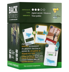 Backstories est un jeu à la mécanique aussi simple que révolutionnaire : un peu à la manière des jeux vidéo Point and Clic, interagissez avec votre environnement pour avancer dans votre palpitante aventure. Certaines cartes (Panorama) représentent l'environnement dans lequel vous évoluez. D'autres cartes (Actions) sont perforées, et représentent les actions que vous pouvez accomplir (Discuter, Fouiller, Objets en votre possession, etc.). Pour interagir, il vous suffit de disposer une carte perforée au dos de la carte Panorama qui vous intéresse, retournez alors la carte, et il vous suffit de lire le résultat de votre choix.