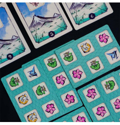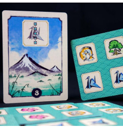 Ukiyo est un jeu tactique de 18 cartes pour 1 à 4 joueurs. Les joueurs posent les cartes horizontalement ou verticalement pour créer des motifs de symboles dans une grille de 6x6.