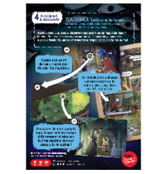 Avec la mécanique de Flashback, voyagez dans le passé grâce aux visions de Lucy et partez à la rencontre de l’ombre qui hante le manoir. Mettez-vous à la place des personnages et découvrez leurs points de vue, accumulez les indices, élucidez les mystères, et répondez aux questions qui vous sont posées. À la différence de Flashback : Zombie Kidz, c’est d’époque en époque que vous allez voyager, en découvrant le manoir à différents moments dans le temps. Avant et après chacune des visions de Lucy, explorez le manoir avec son chat, Gredin, dans une bande dessinée interactive. Et bien sûr, découvrez des gadgets encore plus originaux et immersifs !