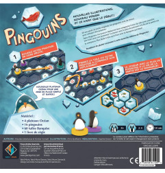 Dans Pingouins, les joueurs doivent attraper autant de poissons que possible avec leurs pingouins. À chaque tour, un joueur déplace un pingouin en ligne droite sur des tuiles de glace en forme d’hexagone avec 1, 2 ou 3 poissons dessus. L’hexagone sur lequel démarre le pingouin est récupéré par le joueur, qui le met dans sa pile de poissons, mais ce faisant, il crée un trou infranchissable sur la banquise. Au fil de la partie, de plus en plus de trous limitent les déplacements. Lorsqu’un pingouin ne peut plus se déplacer, il est retiré du jeu. À la fin de la partie, le joueur ayant le plus de poissons l’emporte.