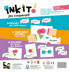 À chacune des 5 manches qui composent la partie, un joueur différent (ou plusieurs, selon le nombre de personnes présentes) est désigné capitaine. Chaque autre joueur reçoit une carte avec le Mot qu’il doit lui faire deviner. Pour cela, les joueurs peuvent utiliser 4 tampons représentant différentes formes colorées : rond rouge, carré bleu, triangle vert et rectangle jaune. Mais attention, le nombre de coups de tampons est limité, et va en diminuant au fil de la partie : de 5 à la première manche à… 1 seul à la dernière !