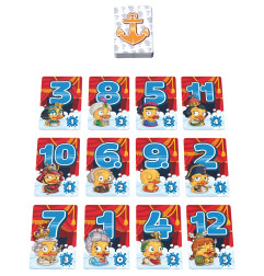 Chaque joueur reçoit une série de 12 cartes canard, portant un chiffre de 1 à 12, les mélange et les place devant lui, aléatoirement en une grille de 4 cartes sur 3.