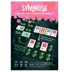 Symbiose est un jeu de cartes original favorisant l'interaction entre les joueuses et joueurs grâce à son système de points dépendant des cartes adverses. Avec 3 modes de jeu aux sensations variées, des règles simples et accessibles, un design graphique soigné et des parties rapides, il est parfait pour tous les publics. L'originalité, la diversité, la simplicité, l'esthétique et la rapidité réunies pour une expérience ludique unique !Â