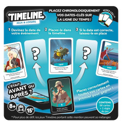 Cette version de Timeline se joue avec des cartes illustrant des événements du monde des loisirs et du jeu. La face noire n’indique pas la date, qui est par contre visible sur la face blanche. Chacun reçoit 4 cartes, côté noir, en début de partie. Une autre carte est tirée de la pioche et posée face date visible au centre de la table. Le but du jeu est d’être le premier joueur à se débarrasser de ses cartes.
