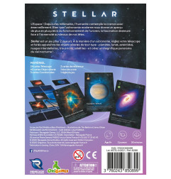 Durant 11 manches, votre télescope ET votre carnet se remplissent de vos observations. Vous et votre adversaire jouez 2 cartes corps célestes par tour. Le choix de la première carte jouée contraint la pose de la deuxième. À tel tour, compléterez-vous d’abord votre carnet OU votre télescope? Les corps célestes jouées dans votre télescope doivent être adjacents ; ils rapportent des points de majorité en fonction de la zone où ils se trouvent en fin de partie. Leur pouvoir se multiplie à votre série de collection dans votre carnet, mais uniquement pour le même type de corps célestes. Les doublons ne comptent pas dans votre carnet, mais permettent d’étoffer la majorité dans votre télescope. Observer les étoiles sans observer le jeu de votre adversaire pourrait vous coûter la victoire…