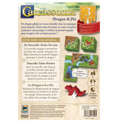 Avec l'extension Carcassonne Dragon & Fée, découvrez de nouvelles mécaniques. Anticipez les déplacements du dragon avant qu'il ne se réveille et ne dévore vos meeple. Heureusement, la fée vous aidera à les protéger. Avec la nouvelle tuile Source, la rivière s'écoule dans deux direction. La nouvelle tuile Lac abrite l'antre du dragon. Enfin, les portails magiques permettent de poser des meeple n'importe où : mais attention au symbole Dragon qui provoque le réveil de la bête.