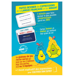 >>>Faites deviner des expressions de la langue française en les mimant. Un jeu familial autour de 480 expressions, avec des cartes bonus et malus. Jouez, mimez, rigolez !