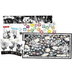 Contenu : 1 Grand plateau de jeu, 1 Petit plateau de jeu, 30 Dés, 53 Cartes, 98 Pions en carton, 41 Pions en bois, 1 livret de règles.