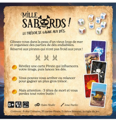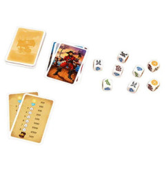 Glissez-vous dans la peau d'un vieux loup de mer et organisez des parties de dés endiablées ! A l'aide des déroutantes cartes Pirate, défiez la chance et vos adversaires pour réaliser des combinaisons de dés et marquez un maximum de points. A votre tour, révélez une carte Pirate qui va influer sur votre tirage. Puis, lancez les dés et tentez de réaliser la meilleure combinaison : vous pouvez relancer autant de fois que vous le souhaitez mais attention aux trois têtes de mort ou vous rentrerez les mains vides ! Réservé aux pirates qui n'ont pas froid aux yeux !