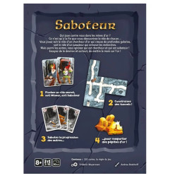 Vous jouez soit le rôle d'un chercheur d'or qui creuse de profondes galeries, soit le rôle d'un saboteur qui entrave les recherches. Mais parmi les autres joueurs, vous ignorez qui est chercheur et qui est saboteur ! Essayez de le deviner pour savoir qui soutenir...