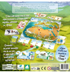 Chaque joueur choisit une espèce migratrice : hirondelle, milan noir, cigogne, rougequeue à front blanc, huppe fasciée, guêpier, bécasse ou sarcelle d’hiver. Les joueurs tenteront d’être les premiers à mener leur espèce à destination (variable selon les espèces).
