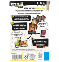 En plus de son fonctionnement classique, Timeline devient désormais aussi un défi coopératif ! Piochez 35 cartes à chaque partie, puis réfléchissez, communiquez et coordonnez-vous pour les poser dans le bon ordre, tout en défaussant les plus gênantes. Essayez d’obtenir le meilleur score possible à chaque nouvelle partie.
