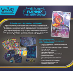 Contenu : 1 carte promo brillante de Méga-Dracaufeu X-ex, 1 carte promo brillante de Plumeline-ex, 65 protège-cartes au motif de Méga-Dracaufeu X, 1 tapis de jeu représentant Méga-Dracaufeu X, 1 étui pour deck représentant Méga-Dracaufeu X, 1 pièce métallisée de Méga-Dracaufeu X, 6 dés marqueurs de dégâts, 18 boosters du JCC Pokémon (4x ME02 « Flammes Fantasmagoriques », 4x ME01 « Méga-Évolution », 2x EV09 « Aventures Ensemble », 4x EV03 « Flammes Obsidiennes », 4x EV02 « Évolutions à Paldea »), 1 carte à code pour le JCC Pokémon