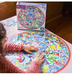 Le puzzle le plus gentil du monde ! 3 grands cercles d'animaux et de gens en train d'accomplir de bonnes actions. Un puzzle de sol géant pour apprendre à être gentil avec les autres ! Ce puzzle coloré est certifié FSC, et fait à 90% de matière recyclées !