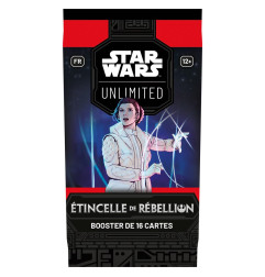 Parcourez une galaxie dans laquelle tout est possible grâce à Star Wars™: Unlimited ! Dans ce jeu de cartes à collectionner rapide, dynamique et facile d’apprentissage, les joueurs s’affrontent dans un duel palpitant à l’aide de personnages emblématiques de l’univers Star Wars. Chaque booster de ce premier cycle Étincelle de Rébellion contient 16 cartes aléatoires à ajouter à votre collection, dont 9 Communes, 3 Peu Communes, 1 Rare ou Légendaire, 1 Leader, 1 Base/Jeton, 1 carte Foil (brillante).